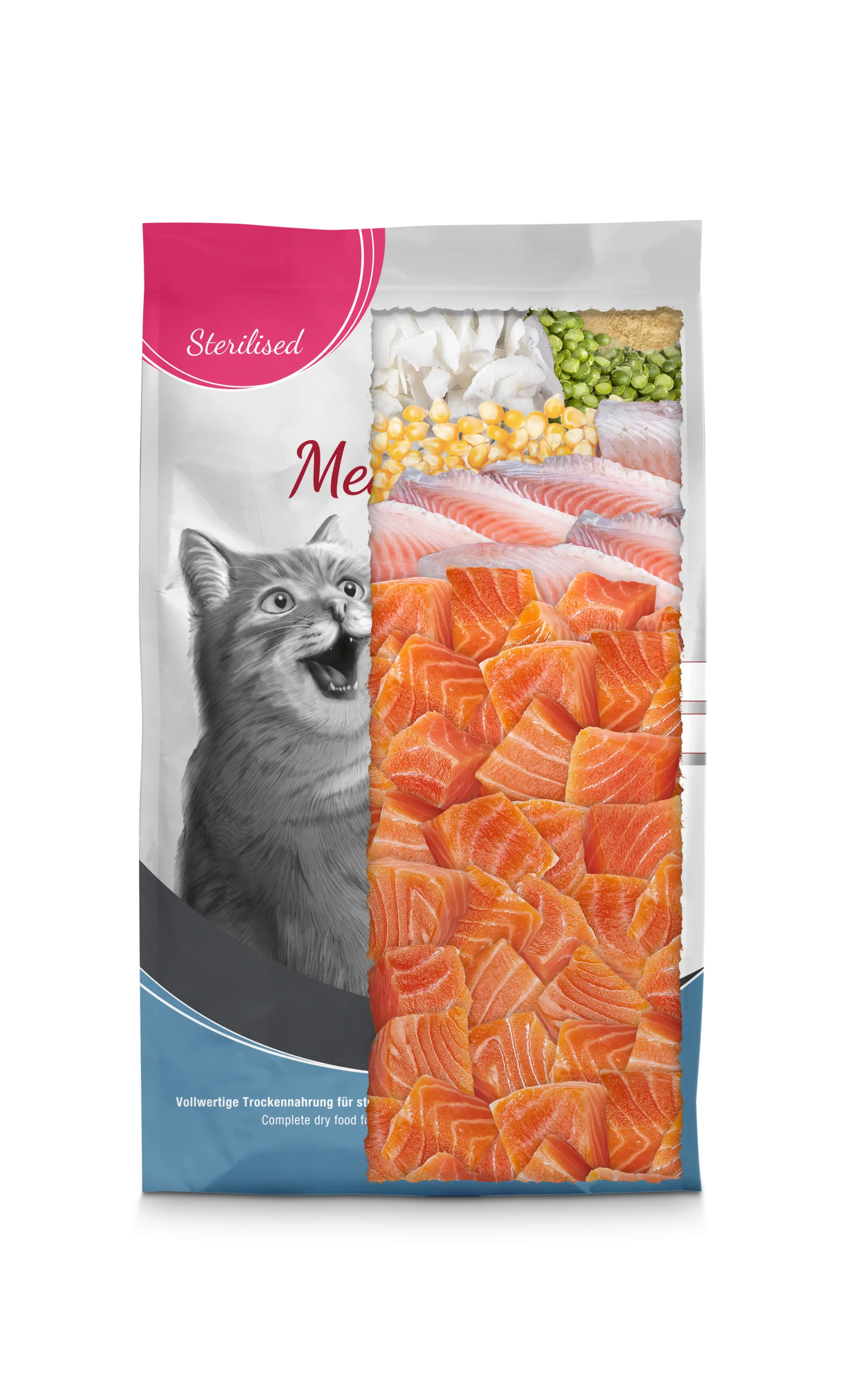 Visavertis sausas pašaras sterilizuotoms katėms su žuvim