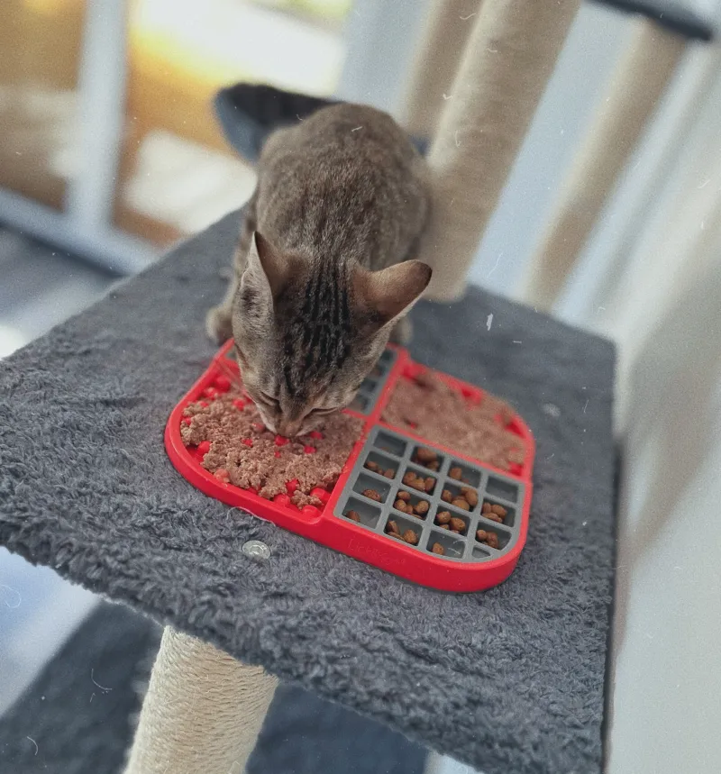 LickiMat Slomo – veterinarų sukurtas lėto maitinimo kilimėlis, idealiai tinkantis Platinum Meat Crisp kačių maistui. Ant skirtingų jo paviršių galima paskirstyti tiek sausą, tiek šlapią maistą ar skanėstus. LickiMat Slomo privalumai yra įvairiapusiai ir jau įtikino patyrusius gyvūnų trenerius visame pasaulyje. Koncepcija paremta iššūkių suteikimu katei, už kuriuos ji gauna tinkamą atlygį – maistą ar skanėstus. Tai užima katę ilgesniam laikui, o maistas suvartojamas mažesnėmis porcijomis.