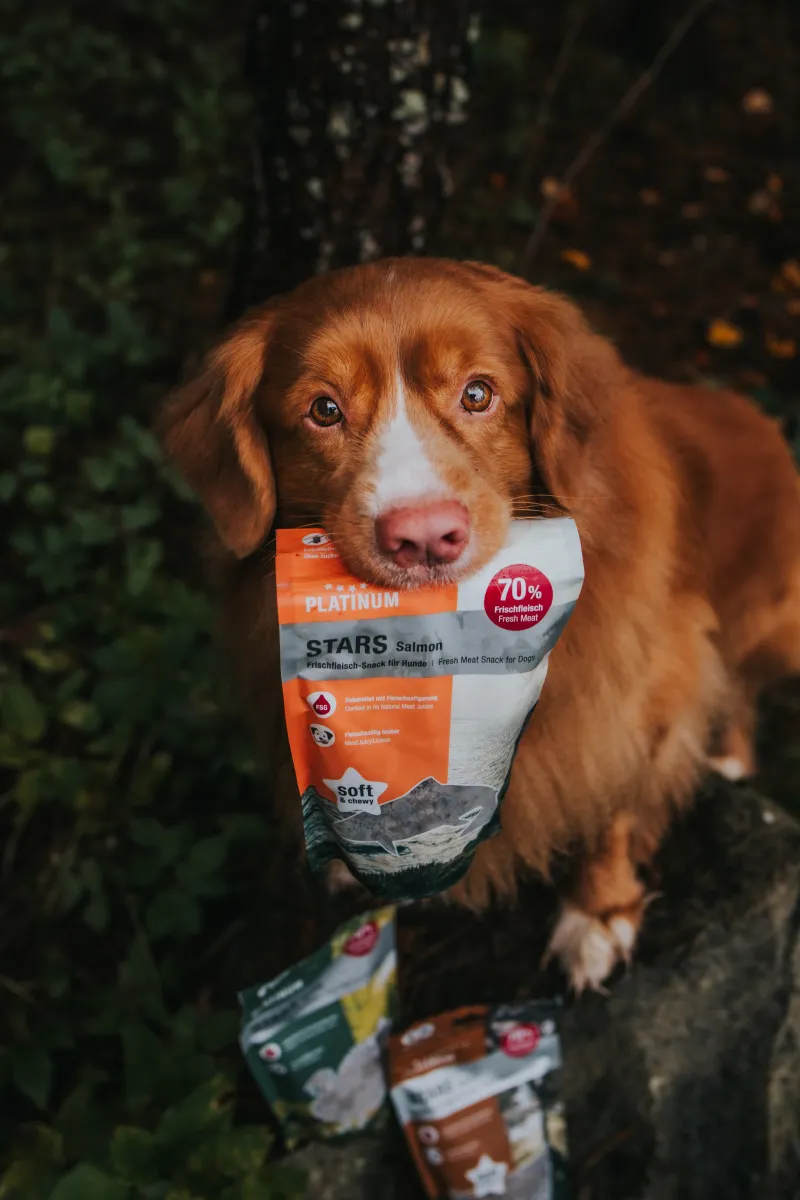 Sudėtis: šviežia lašiša 70%, bulvės*, žuvis*, augalinės kilmės produktai*, lašišų aliejus** (omega-3), daržovės* (brokoliai, morkos, porai), žaliųjų midijų ekstraktas, pomidorai*, Afrikinių medetkų žiedai*, kiaulpienės*, ramunėlės*, raudonėlis*, margainių sėklos*, spanguolių sėklos*, jūros dumbliai*.